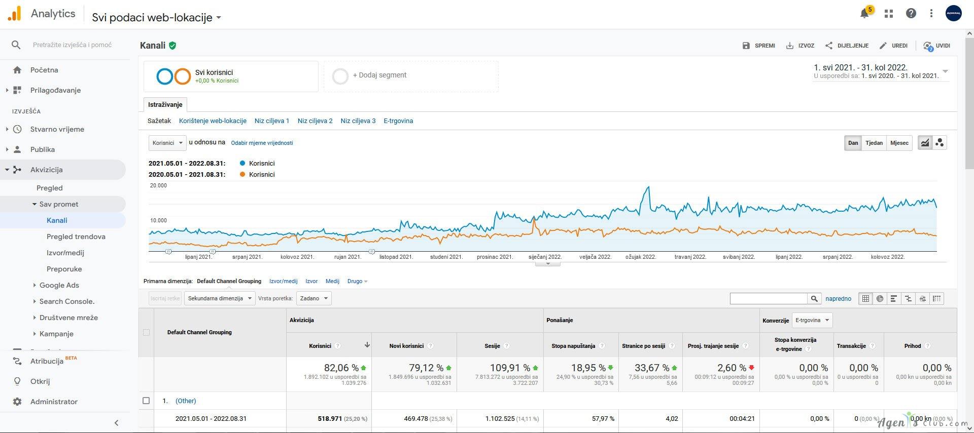 Admiral Casino - Google traffic growth 96,35 %